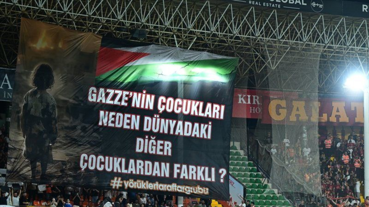 Alanyaspor taraftarları, Galatasaray ile oynanan Süper Lig maçı öncesinde Gazze için bir pankart açtı.