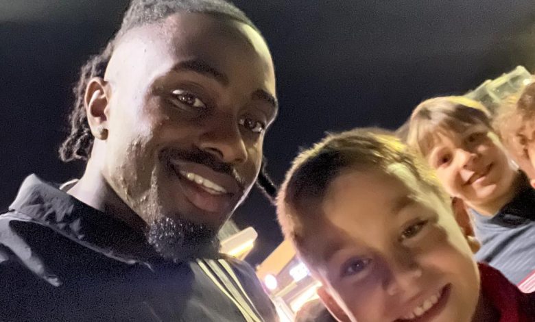 Antoine Makoumbou, çocuklarla kaldırımda futbol oynadı