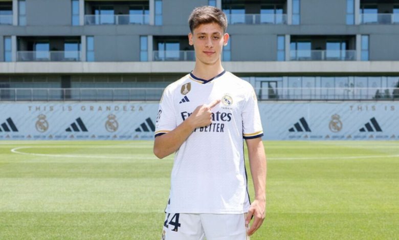 Real Madrid Başkanı başkan Florentino Perez ile sözleşme imzalayan Arda Güler, 24 numaralı formasıyla kameralara poz verdi.