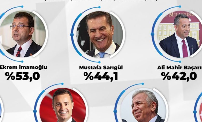 Ankette, son seçimde CHP'ye tekrar dönen CHP Milletvekili Mustafa Sarıgül de yüzde 44.1’le üçüncü sırada yer aldı.