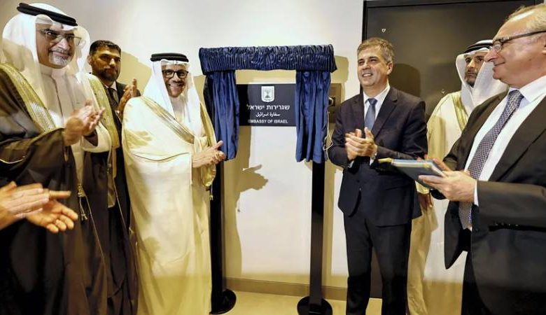 İsrail, Bahreyn ile ilişkilerini normalleştirmesinden 3 yıl sonra ülkedeki büyükelçiliğini resmen açtı. İsrail Dışişleri Bakanı Eli Cohen, iş insanları ve hükümet yetkililerinden oluşan bir heyetle Bahreyn’e yaptığı ziyaret sırasında diplomatik misyonun açılışı için düzenlenen resmî törene katıldı.