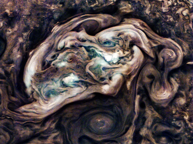 Juno, 23 Ekim’de gezegenin en yakın noktasına ulaştığında elde edilen veriler, Jüpiter’in yüzeyindeki rengarenk lekeleri sergiliyor.