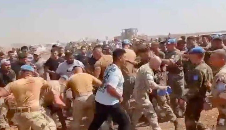Birleşmiş Milletler (BM) Barış Gücü’nün, Kuzey Kıbrıs Türk Cumhuriyeti’nin (KKTC) Pile-Yiğitler Yolu inşaatına yönelik müdahalesinden yeni görüntüler ortaya çıktı. Görüntülerde, BM Barış Gücü askerleriyle KKTC’li yetkililer arasındaki arbede görülüyor. KKTC, bu arbedede 8 polisin yaralandığını duyurmuştu.