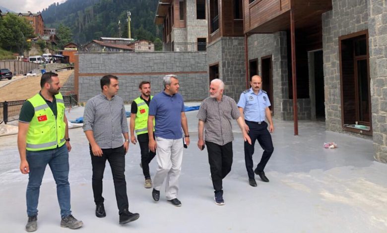 Rize Valisi Baydaş, Ayder’de inşa faaliyetleri tamamlanmak üzere olan kapalı otopark, kaplıca otel ve rezerv konut projelerinde incelemelerde bulunarak brifing aldı.